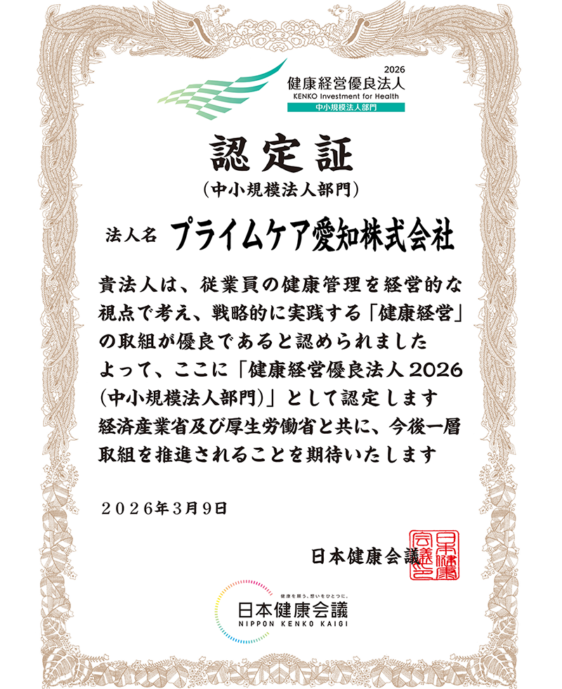 HOME > お知らせ > 新着情報 > 健康経営優良法人2026(中小規模法人部門)認定のお知らせ